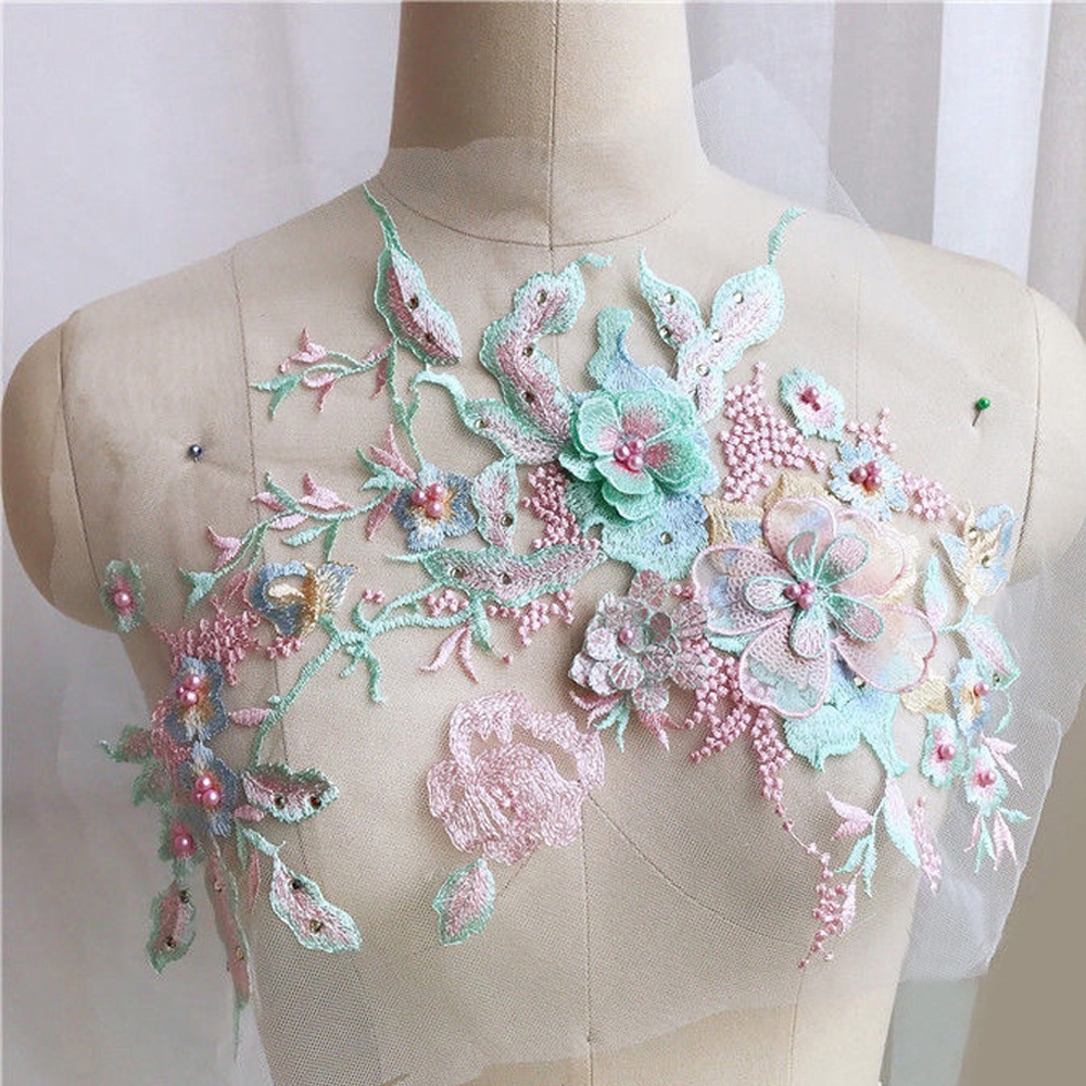 3d Embroidered Bead Flower Lace Appliques Patch Fabric Wedding Dress Diy Elegant