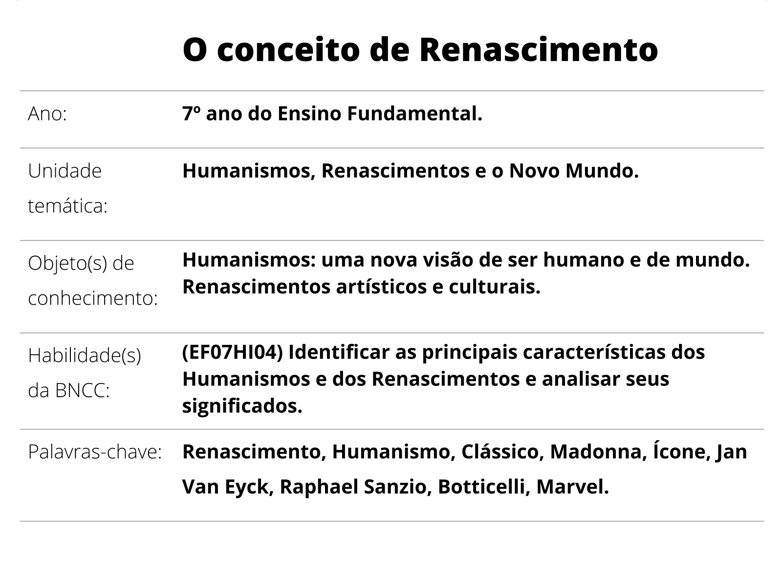 Plano de Aula - 7º ano - História - O conceito de Renascimento