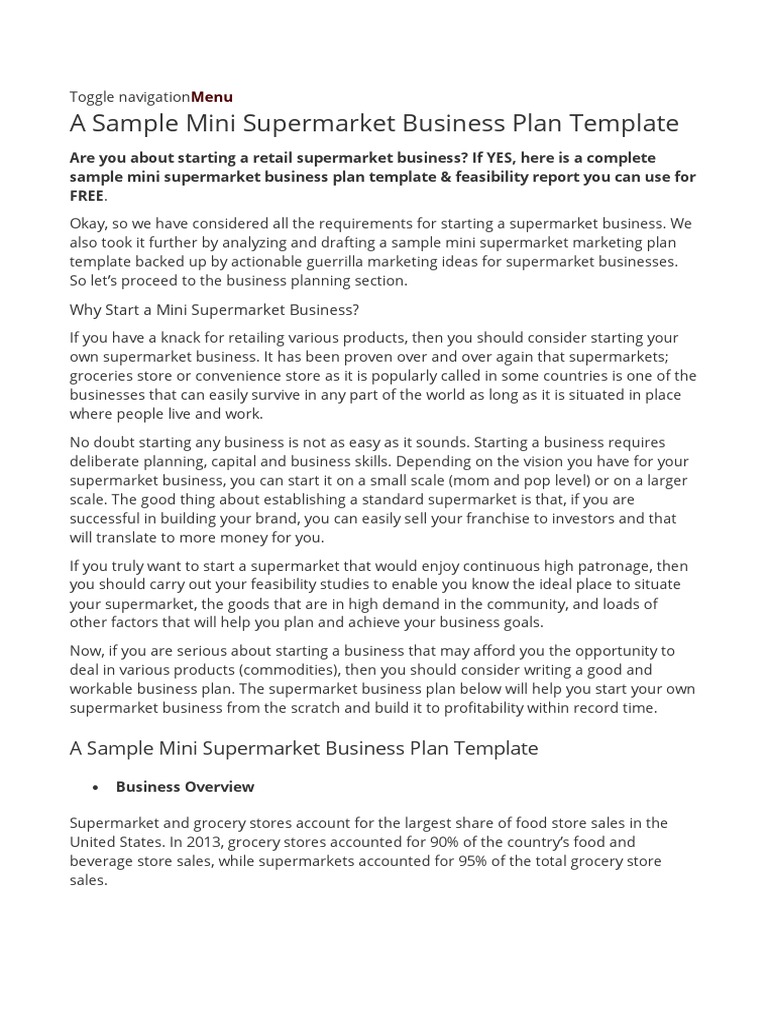 A Sample Mini Supermarket Business Plan Template Supermarket Retail